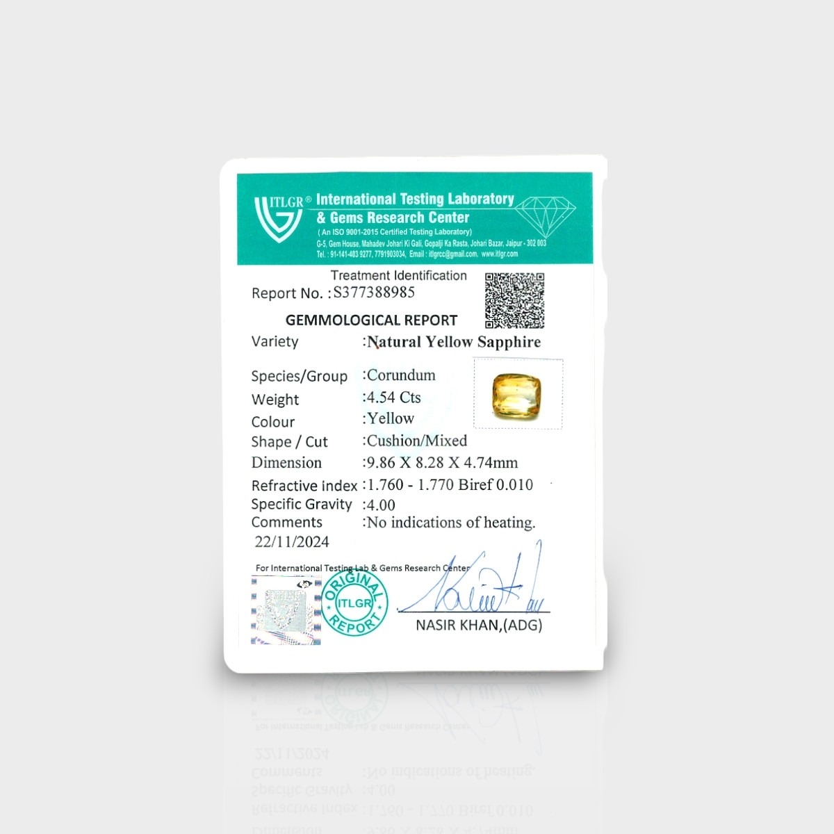 4.54 Cts. Yellow Sapphire 9.82X8.23X4.70mm Faceted Cushion Shape AA+ Grade Loose Gemstone - Total 1 Pc.