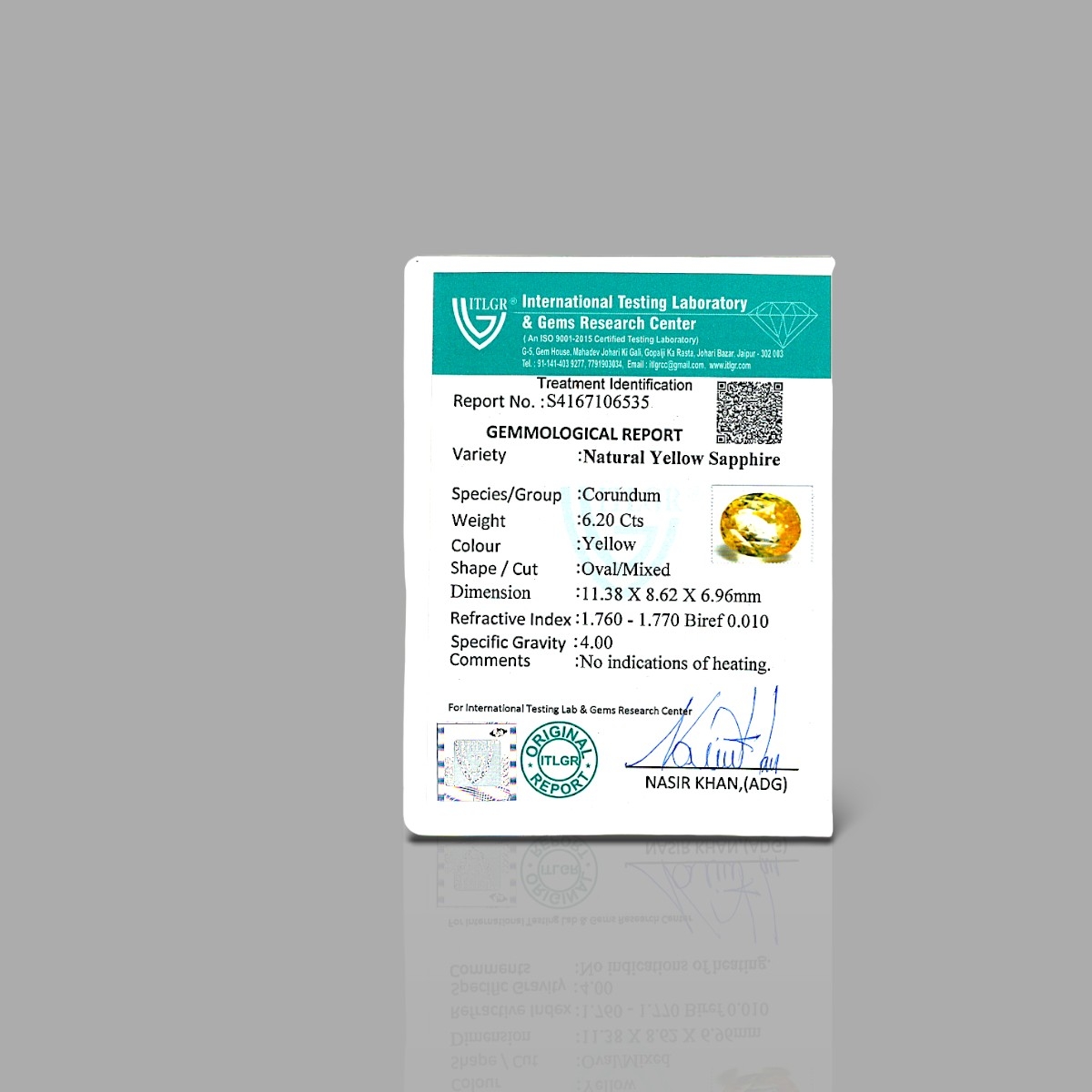 Buy This "AA" Grade 11.38x8.62x6.96mm Faceted Oval Shape Natural Yellow Sapphire (Un-Treated) Loose Gemstone. You Will Receive 1 Pc. With a Total Weight of 6.20 Cts.. This Yellow Sapphire Stone is Originated From Sri Lanka and Masterfully Handcrafted by The Experienced Artisans of Jaipur (India).