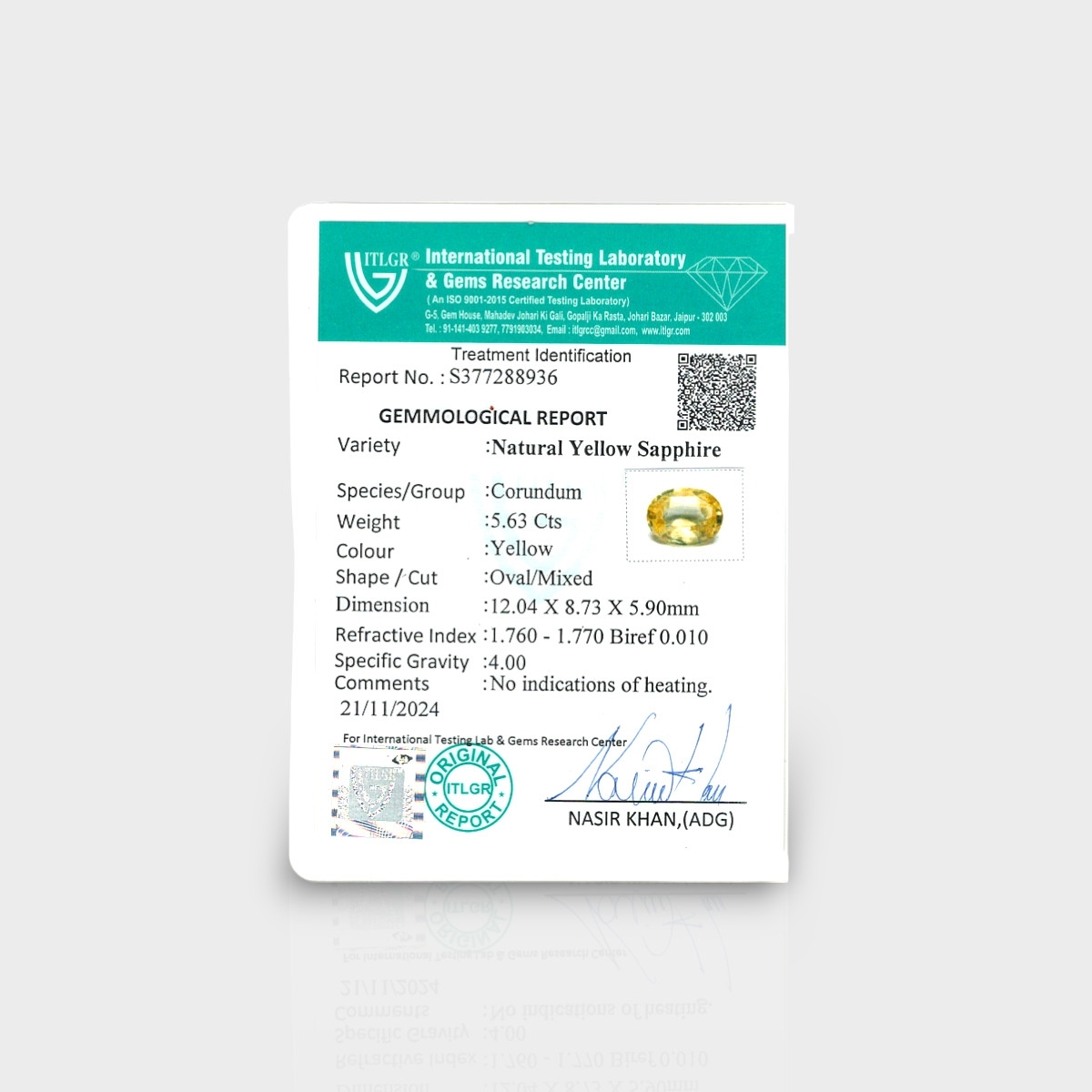 5.63 Cts. Yellow Sapphire 11.98X8.66X5.90mm Faceted Oval Shape AA+ Grade Loose Gemstone - Total 1 Pc.