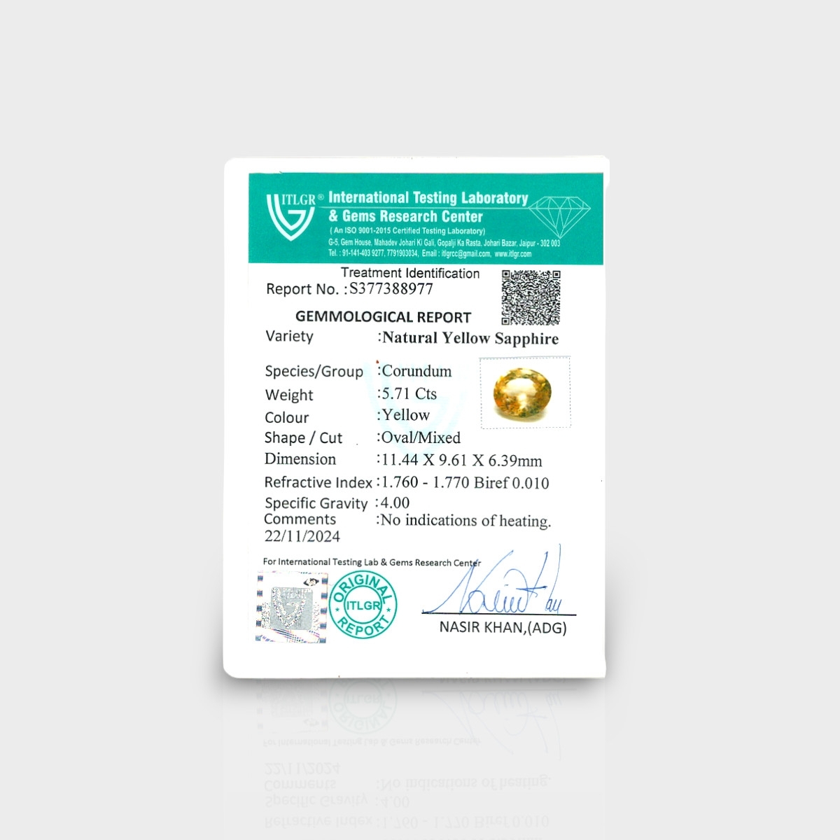 5.71 Cts. Yellow Sapphire 11.40X9.63X6.30mm Faceted Oval Shape AA+ Grade Loose Gemstone - Total 1 Pc.