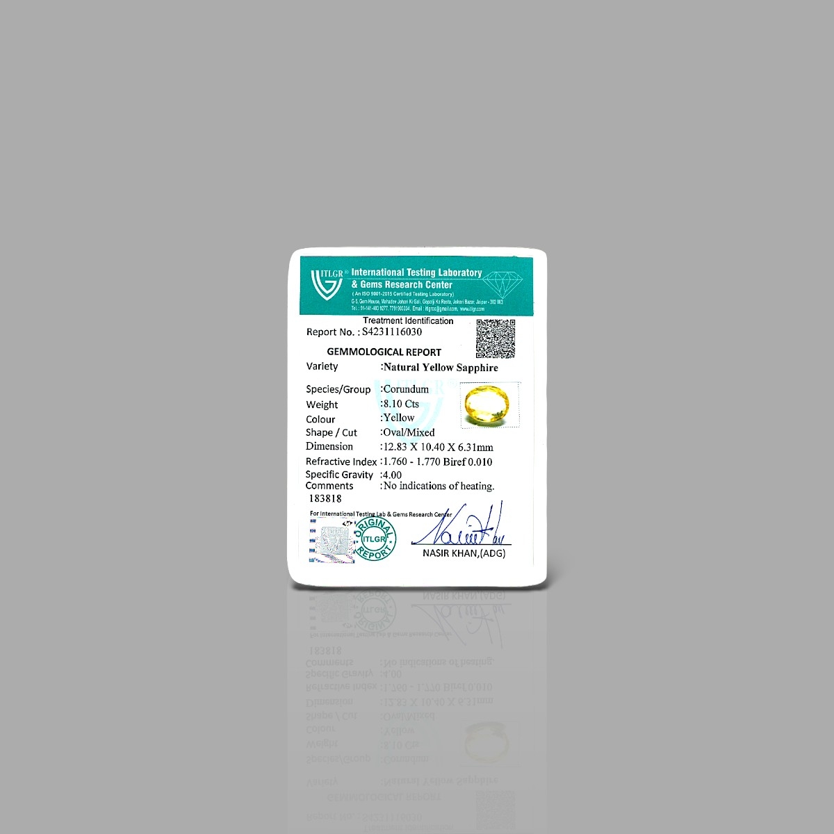 Buy This "AA" Grade 12.83x10.40x6.31mm Faceted Oval Shape Natural Yellow Sapphire (Un-Treated) Loose Gemstone. You Will Receive 1 Pc. With a Total Weight of 8.10 Cts.. This Yellow Sapphire Stone is Originated From Sri Lanka and Masterfully Handcrafted by The Experienced Artisans of Jaipur (India).