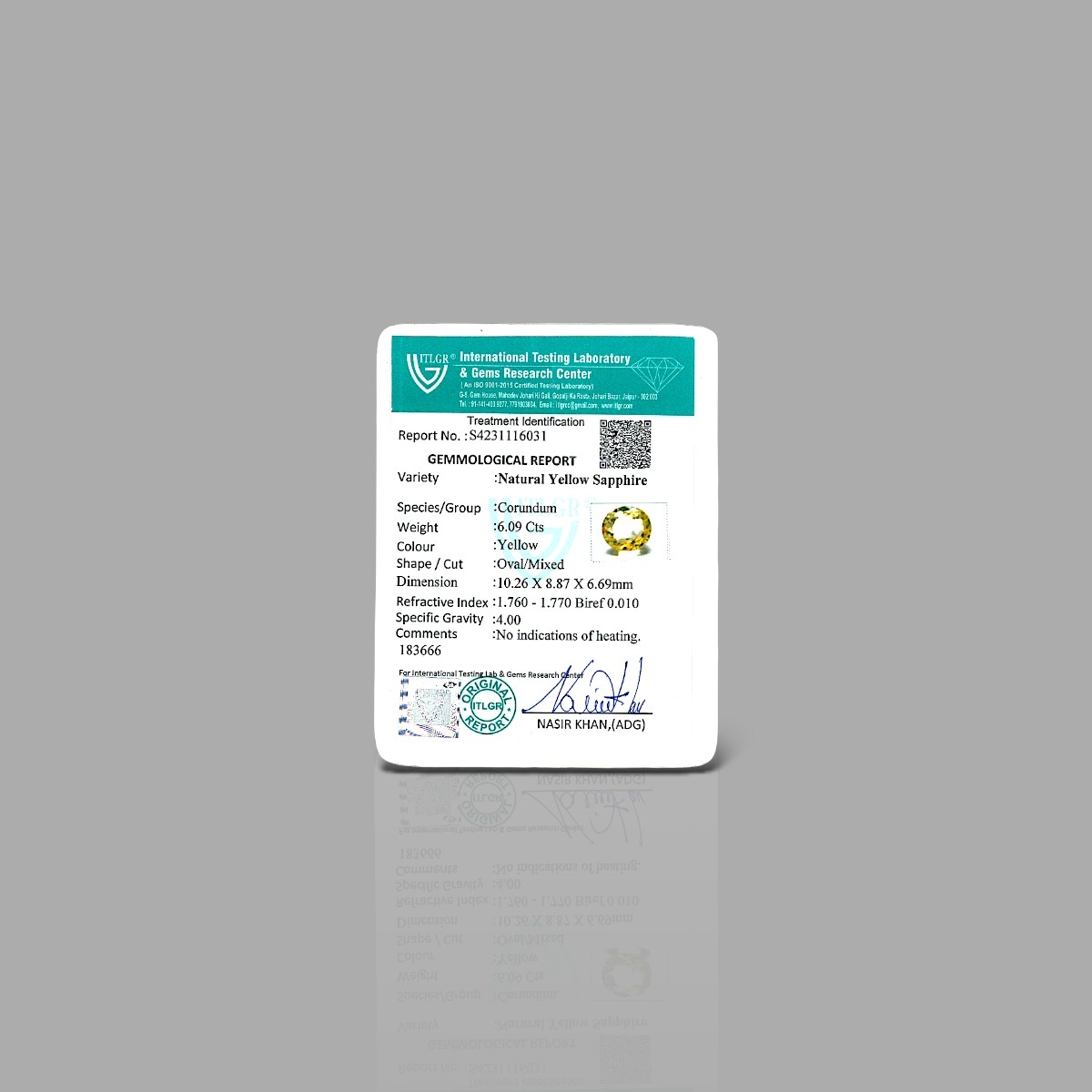 Buy This "AA" Grade 10.26x8.87x6.69mm Faceted Oval Shape Natural Yellow Sapphire (Un-Treated) Loose Gemstone. You Will Receive 1 Pc. With a Total Weight of 6.09 Cts.. This Yellow Sapphire Stone is Originated From Sri Lanka and Masterfully Handcrafted by The Experienced Artisans of Jaipur (India).