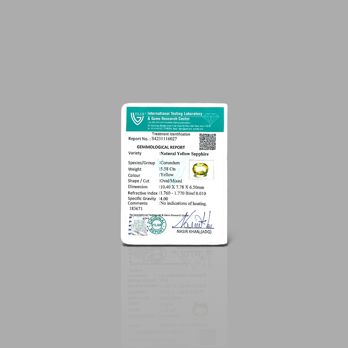 Buy This "AA" Grade 10.40x7.78x6.50mm Faceted Oval Shape Natural Yellow Sapphire (Un-Treated) Loose Gemstone. You Will Receive 1 Pc. With a Total Weight of 5.58 Cts.. This Yellow Sapphire Stone is Originated From Sri Lanka and Masterfully Handcrafted by The Experienced Artisans of Jaipur (India).