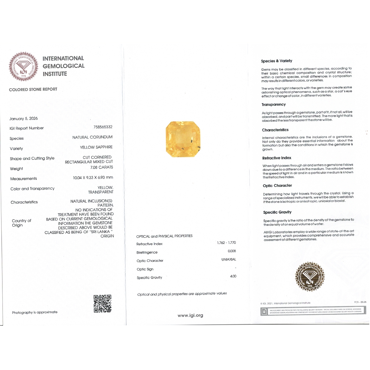 Buy This "AAA" Grade 10.04x9.33x6.93mm Step Cut Octagon Shape Natural Yellow Sapphire (Un-Treated) Loose Gemstone. You Will Receive 1 Pc. With a Total Weight of 7.08 Cts.. This Yellow Sapphire Stone is Originated From Sri Lanka and Masterfully Handcrafted by The Experienced Artisans of Jaipur (India).