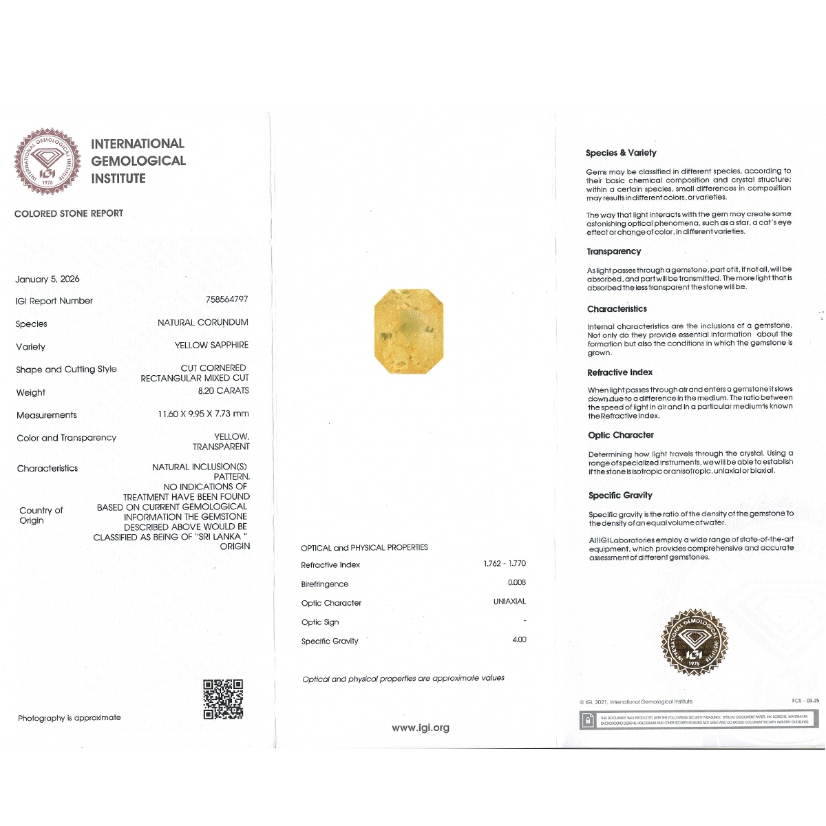 Buy This "AAA" Grade 11.60X9.95X7.73mm Step Cut Octagon Shape Natural Yellow Sapphire (Un-Treated) Loose Gemstone. You Will Receive 1 Pc. With a Total Weight of 8.20 Cts.. This Yellow Sapphire Stone is Originated From Sri Lanka and Masterfully Handcrafted by The Experienced Artisans of Jaipur (India).