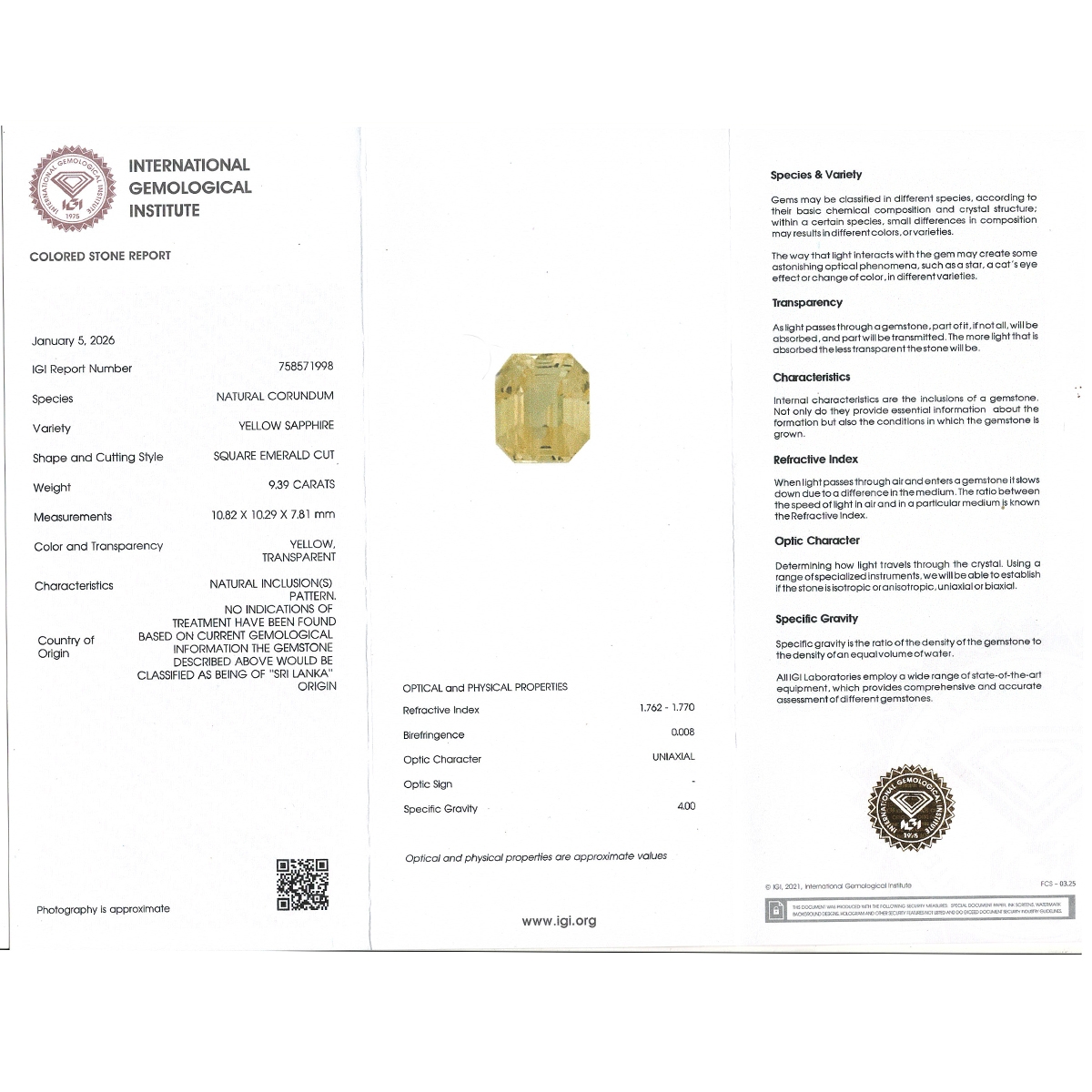 Buy This "AA+" Grade 10.82X10.29X7.81mm Step Cut Octagon Shape Natural Yellow Sapphire (Un-Treated) Loose Gemstone. You Will Receive 1 Pc. With a Total Weight of 9.39 Cts.. This Yellow Sapphire Stone is Originated From Sri Lanka and Masterfully Handcrafted by The Experienced Artisans of Jaipur (India).
