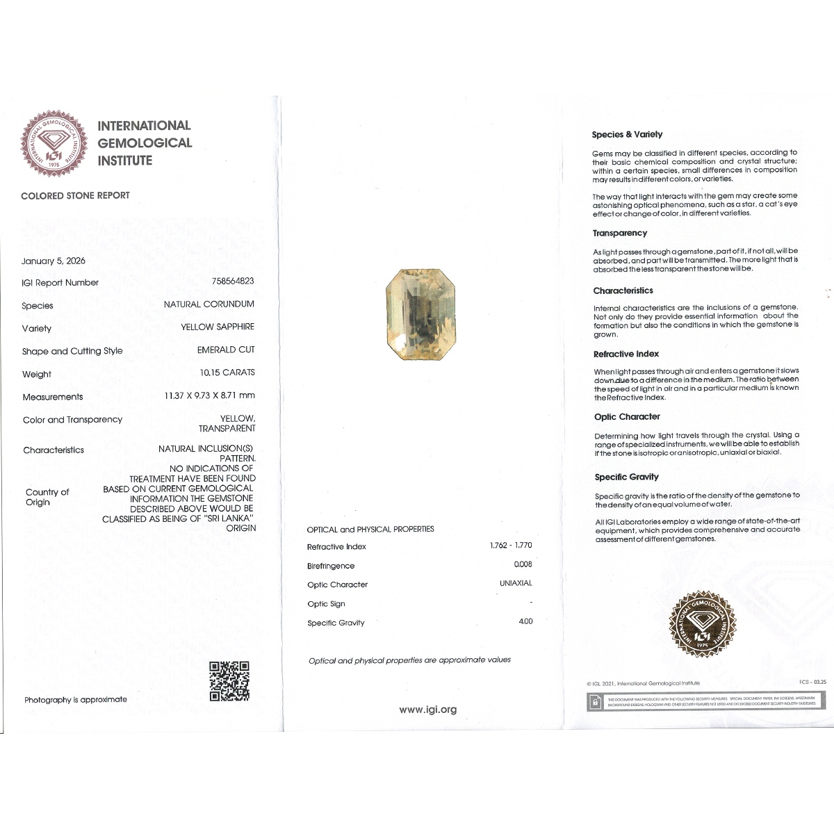 Buy This "AA+" Grade 11.37X9.73X8.71mm Step Cut Octagon Shape Natural Yellow Sapphire (Un-Treated) Loose Gemstone. You Will Receive 1 Pc. With a Total Weight of 10.15 Cts.. This Yellow Sapphire Stone is Originated From Sri Lanka and Masterfully Handcrafted by The Experienced Artisans of Jaipur (India).