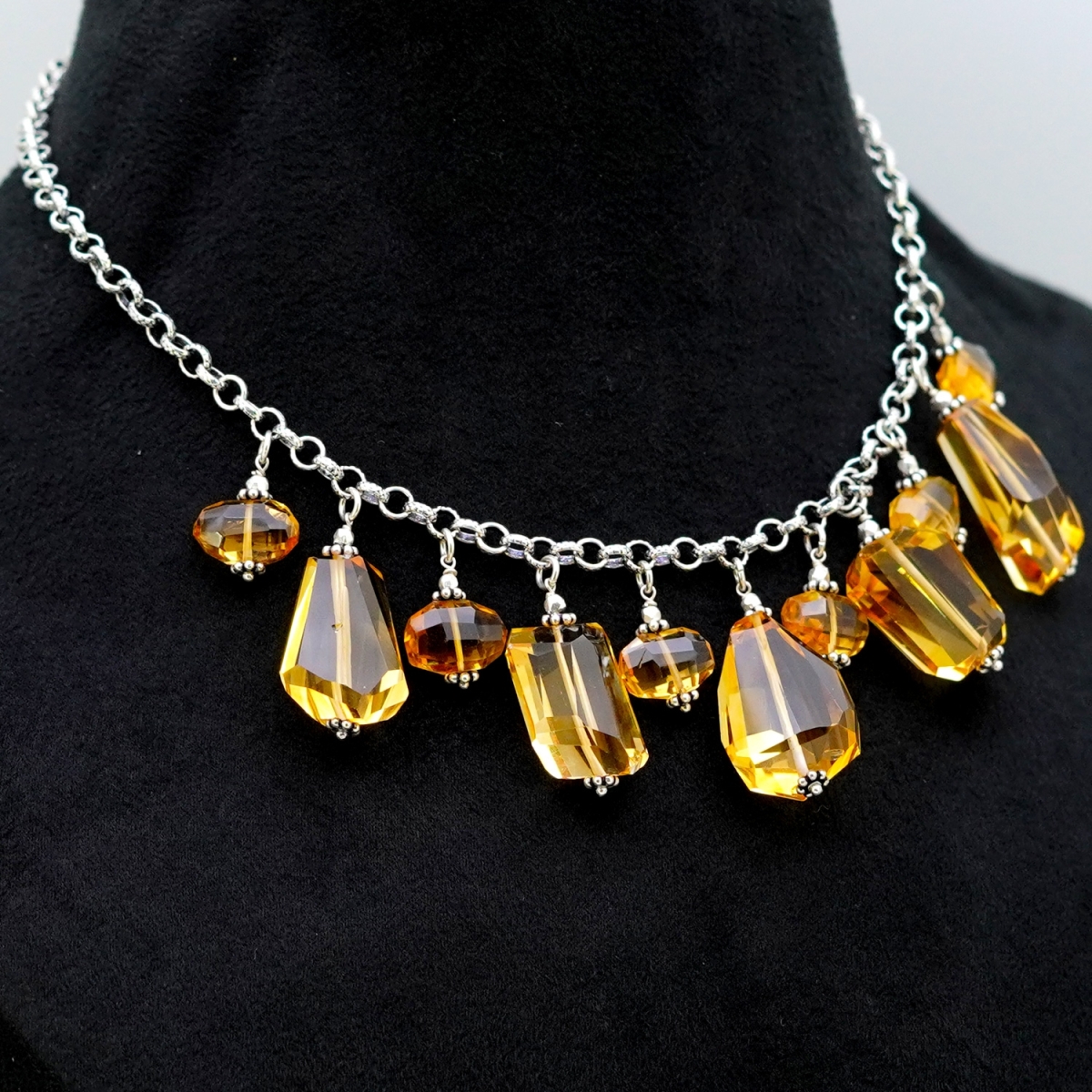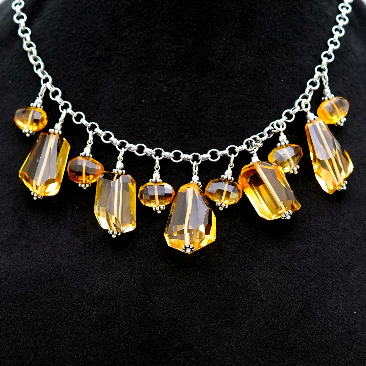 This Contemporary Style Citrine Faceted Nuggets Shape Gemstone Beads Necklace is Made With Rhodium Polished 925 Sterling Silver