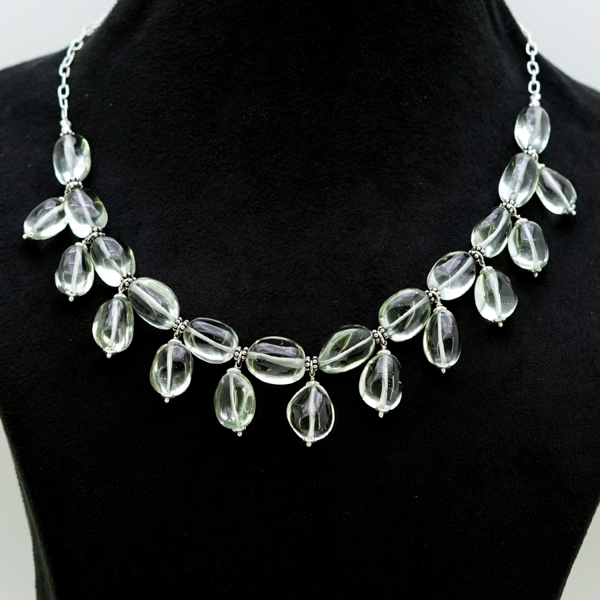 Green Amethyst Hand Crafted Nuggets Shape Gemstone Beads Necklace - This Vintage Style Green Amethyst Smooth Nuggets Shape Gemstone Beads Necklace is Made With Oxidized Polished 925 Sterling Silver